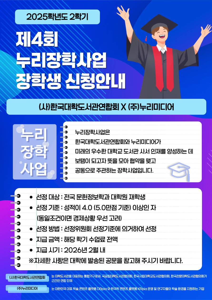 - [일반대학원] 2025년 2학기(제4차) 누리장학사업 장학생 신청 안내